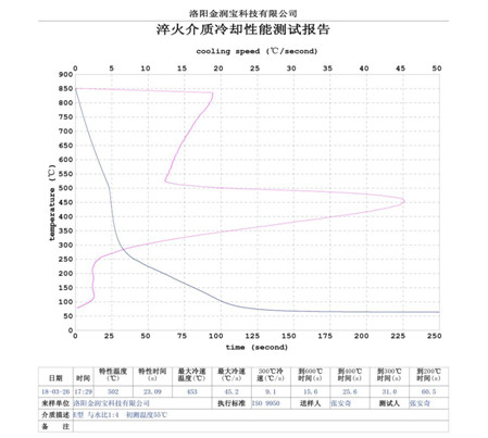以下是ZFQ--E型淬火劑與水不同配比的水溶液在不同溫度的冷卻性。